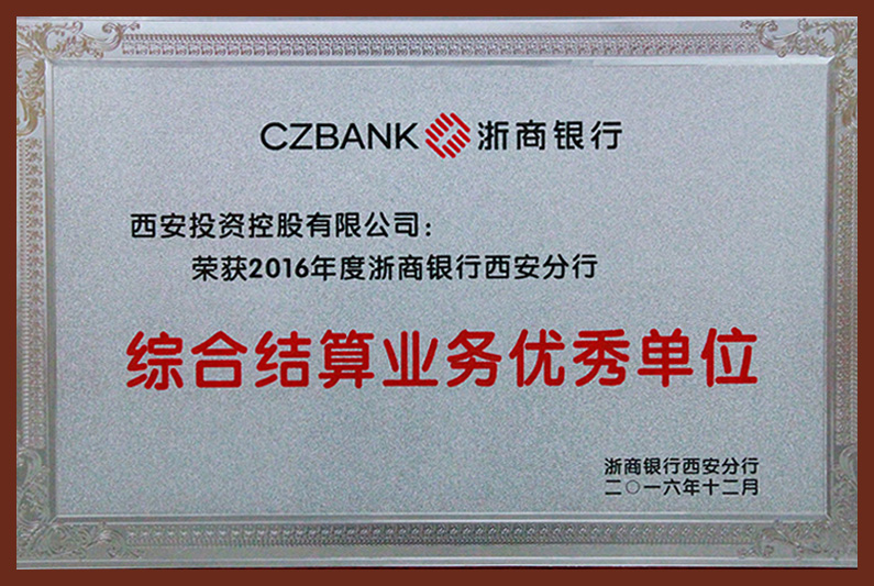 2016年度浙商銀行西安分行綜合結算業(yè)務優(yōu)秀單位
